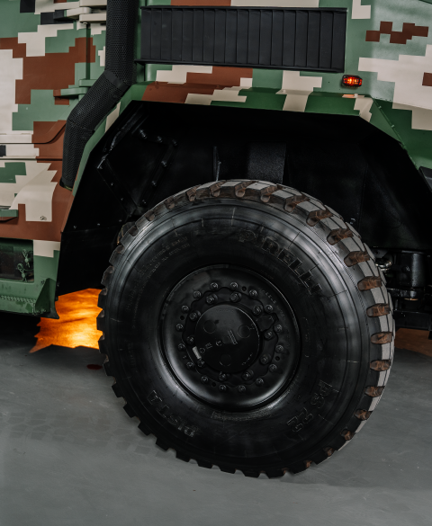 On-site inspection and training activities are conducted through a collaboration between the original equipment tyre manufacturer and military personnel.